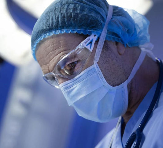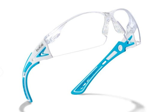 BOLLE RUSH+ SAFETY SPECTACLES CLEAR PC LENS PLATINUM COATING WHITE BLUE FRAME HEALTHCARE - PACK OF 10