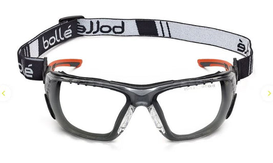 BOLLE NESS+ FOAM AND STRAP INDUSTRIAL SPECTACLE PC CLEAR PLATINUM BLACK ORANGE TEMPLES - PACK OF 10